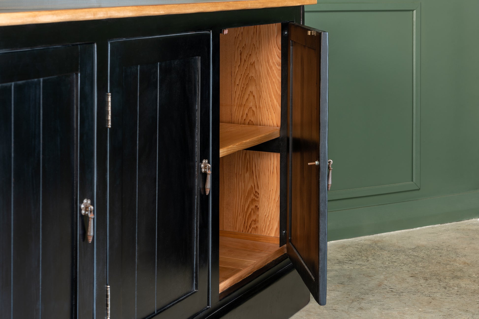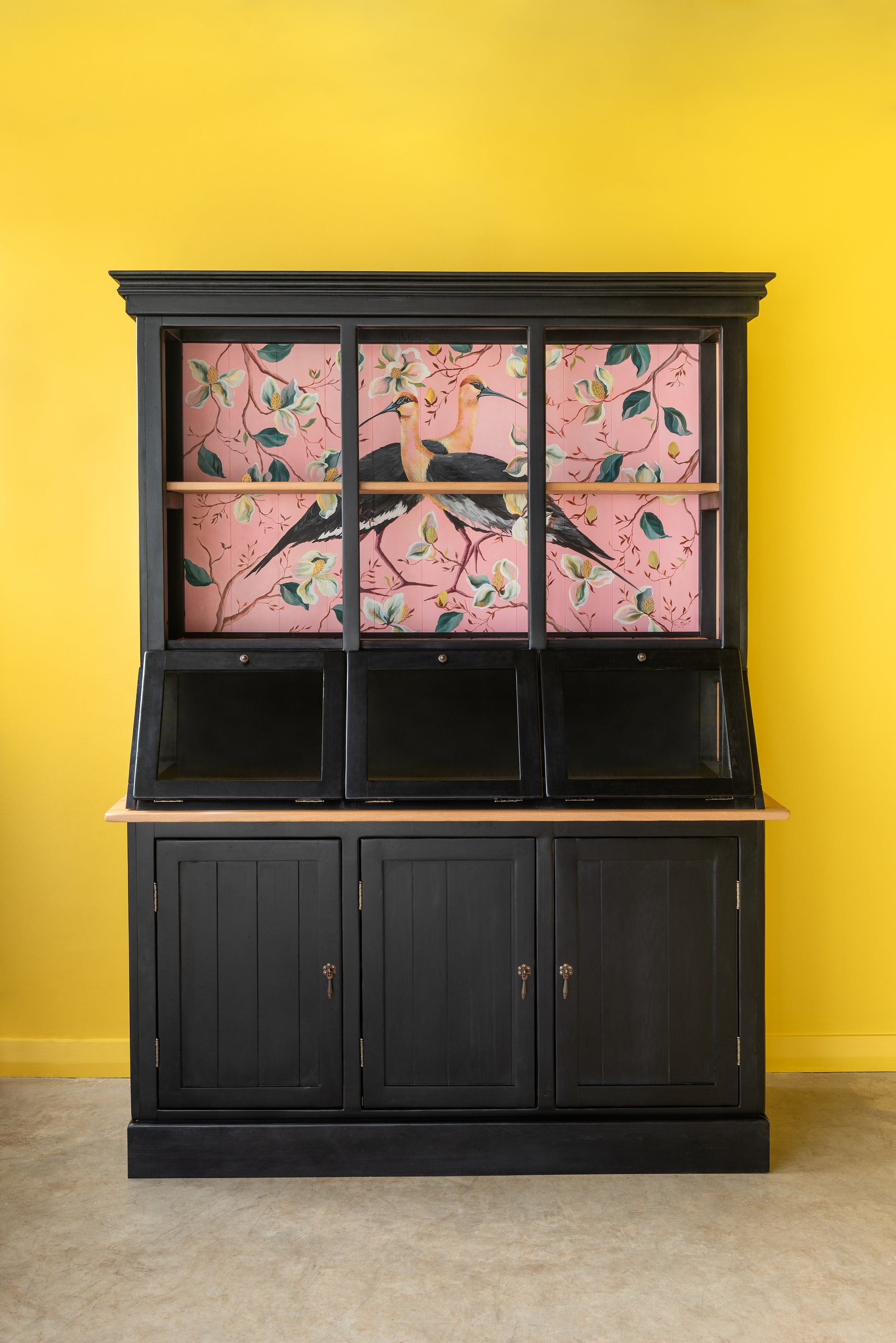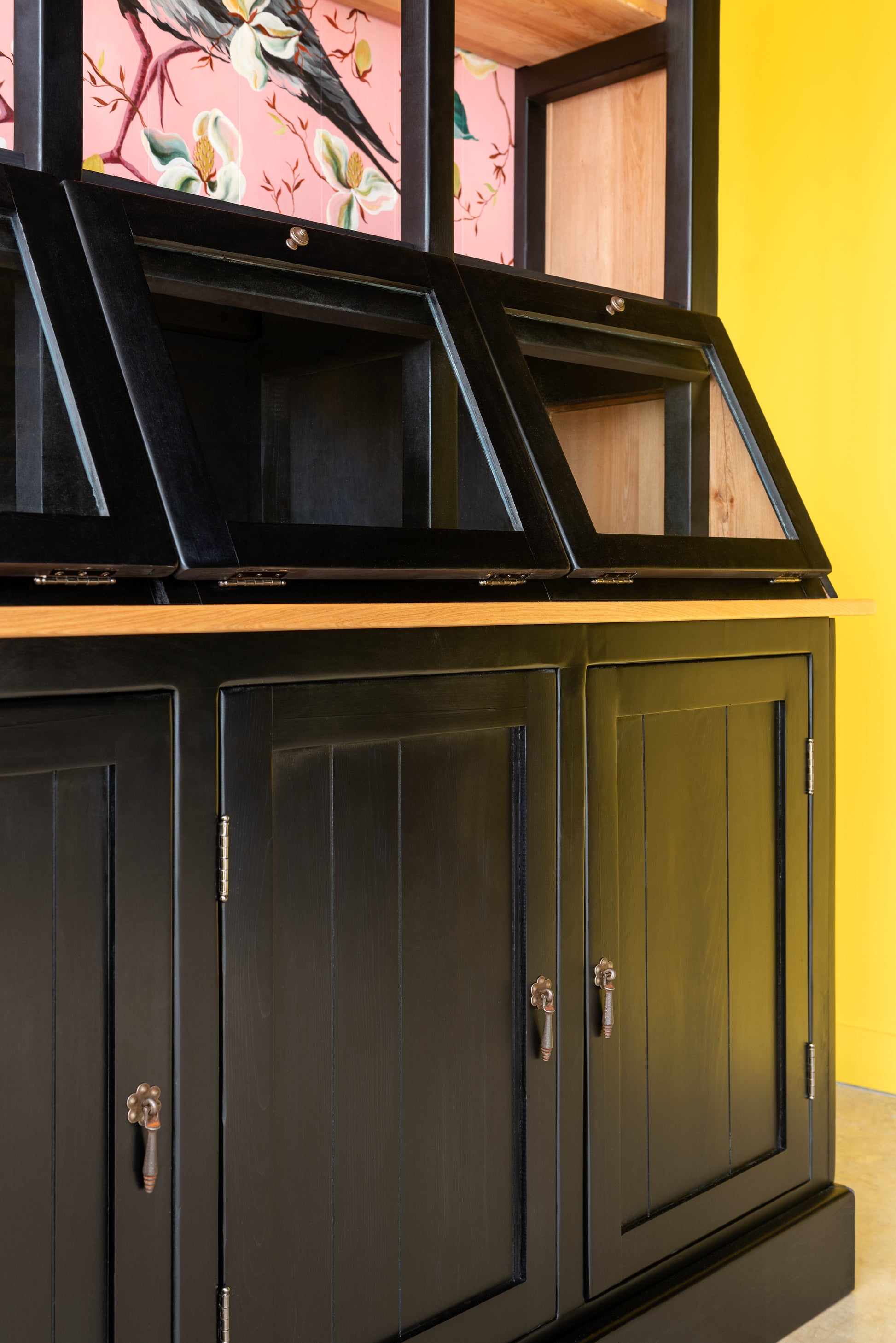 Una maravilla de mueble, diseñado a partir de los antiguos despenseros de Almacenes, cuenta con una vitrina inclinada, vitrina superior y una cómoda Buffet en su inferior. Ideal para guardar lozas, exponer tus objetos más preciados y ponerlo en tu cocina o living comedor.