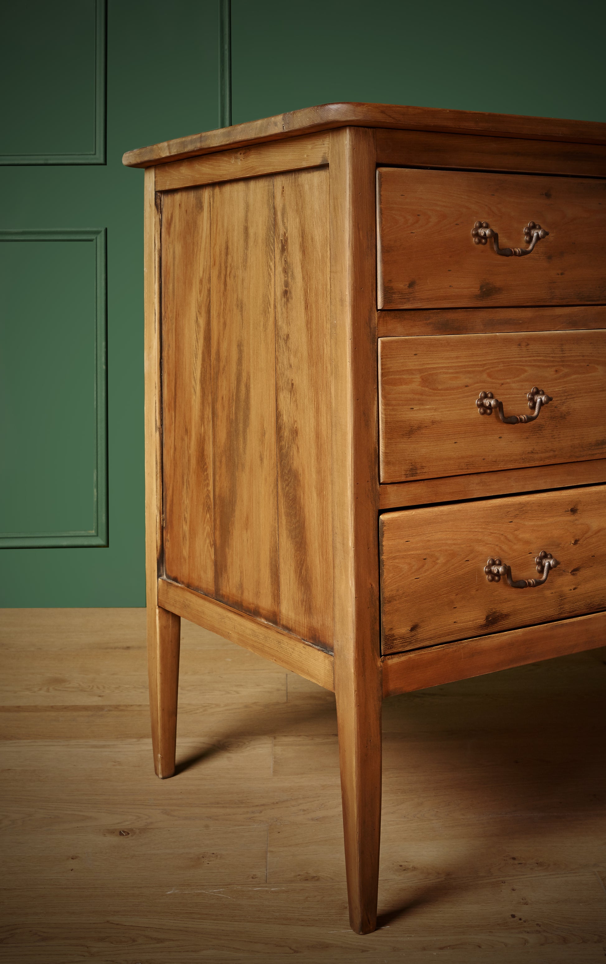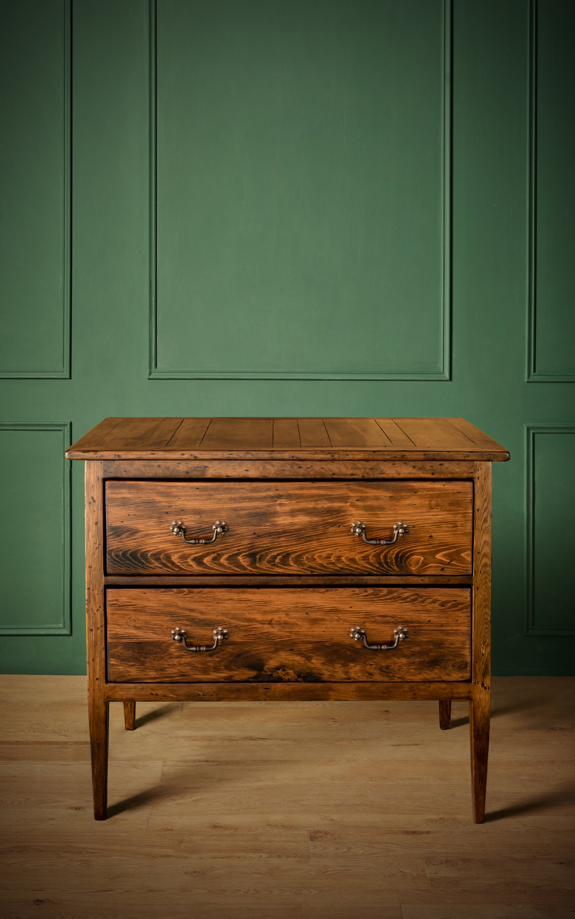 Clásica y elegante, esta cómoda es un mueble que no pasa de moda. La concebimos como velador, ya que sus cajones altos y profundos la convierten en una pieza ideal para guardar y mantener el orden sin perder presencia ni estilo.