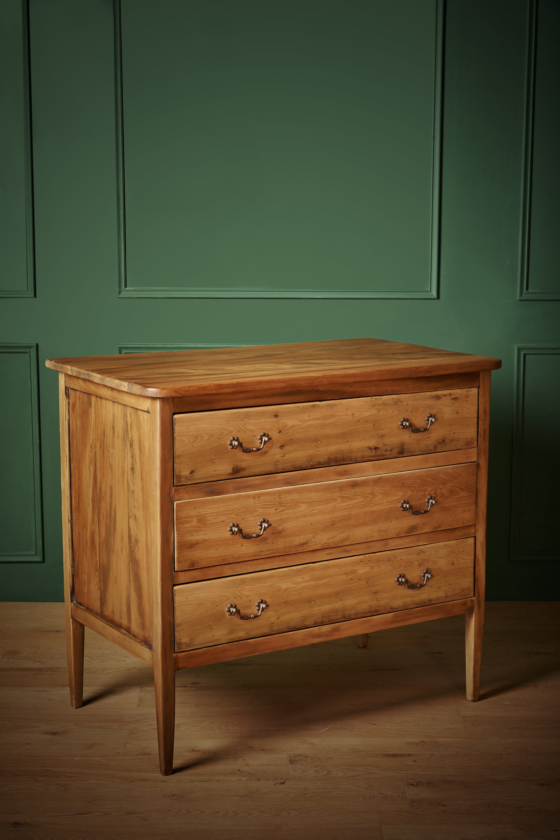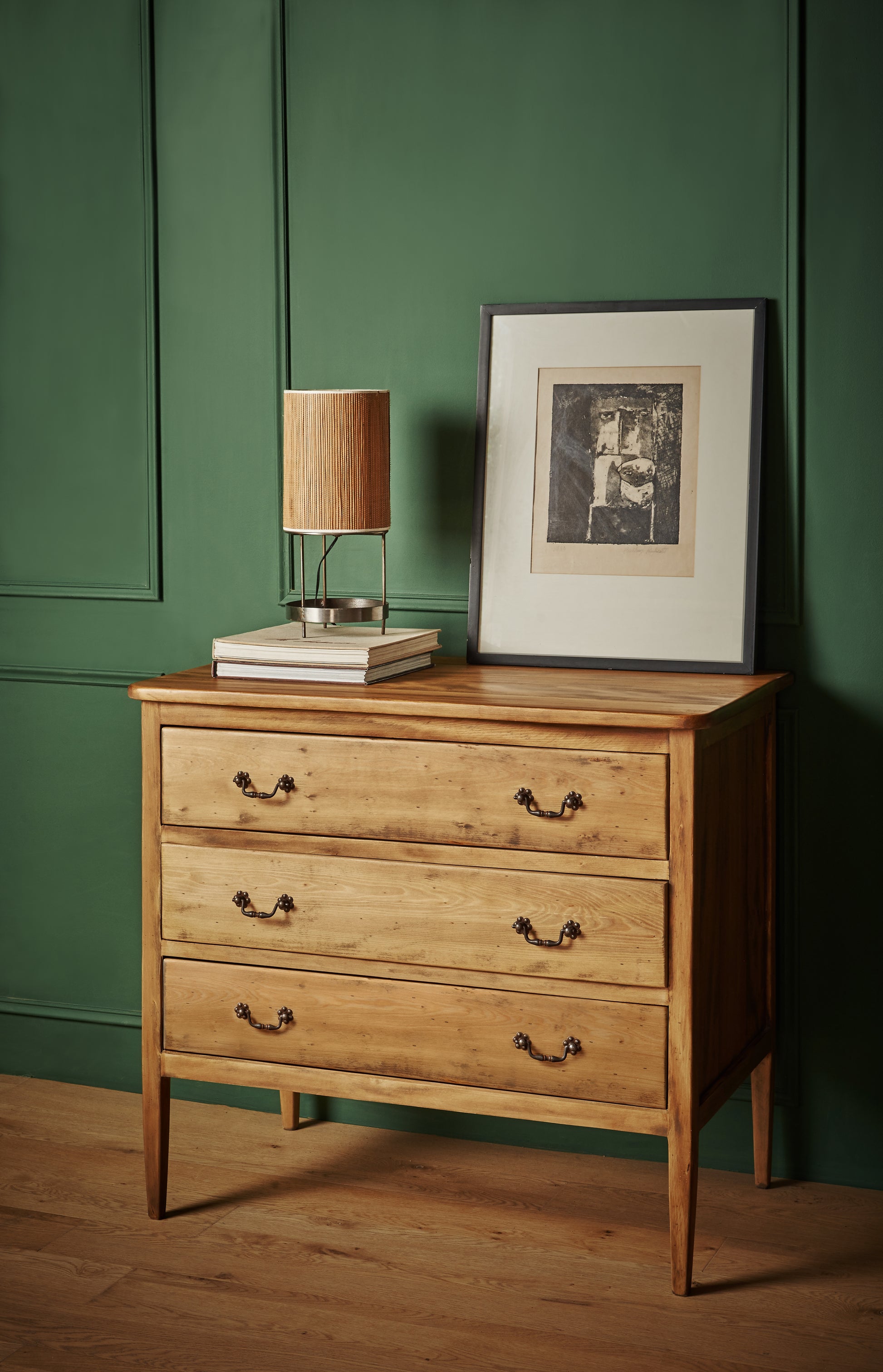 Clásica y elegante, esta cómoda es un mueble que no pasa de moda. La concebimos como velador, ya que sus cajones altos y profundos la convierten en una pieza ideal para guardar y mantener el orden sin perder presencia ni estilo.