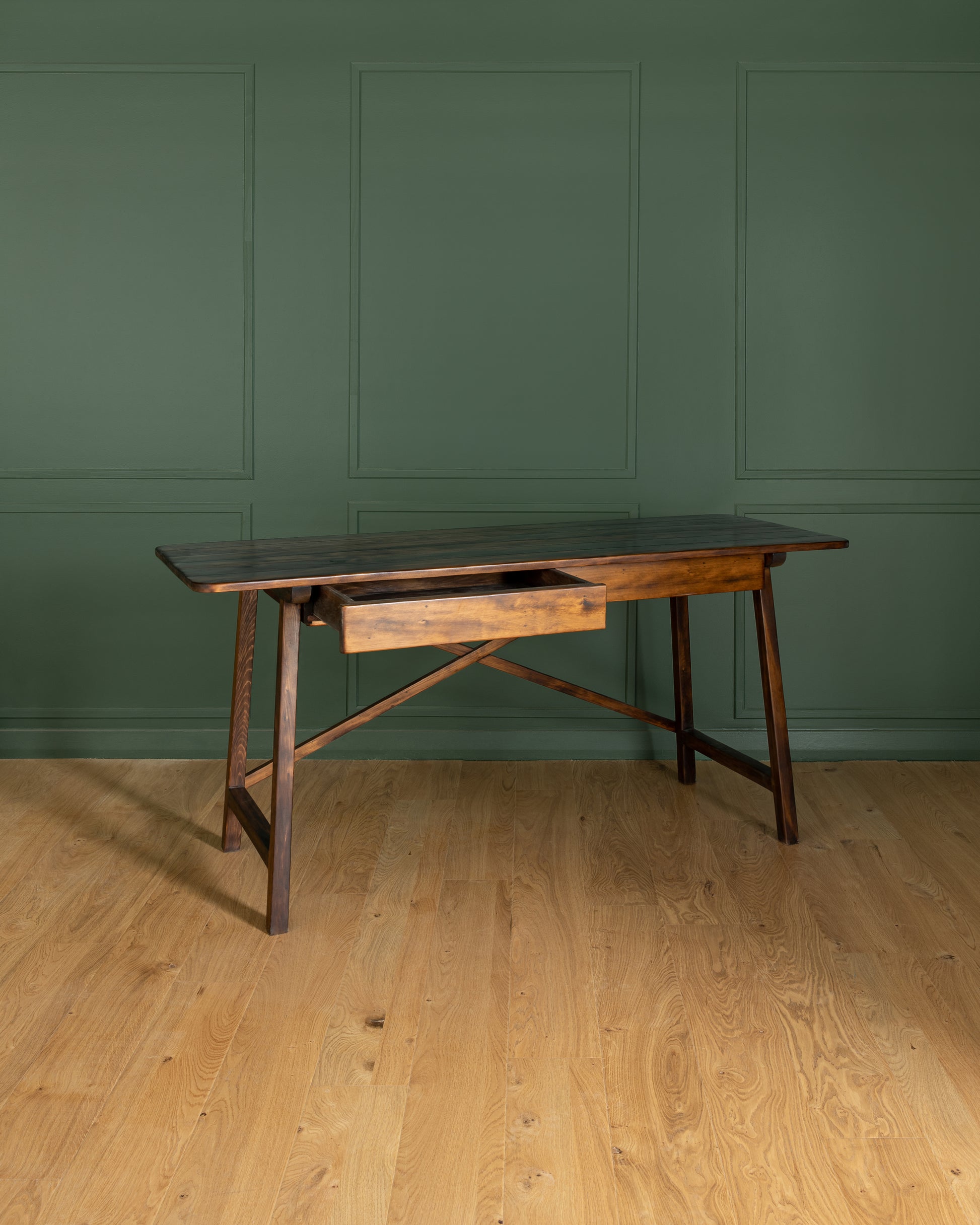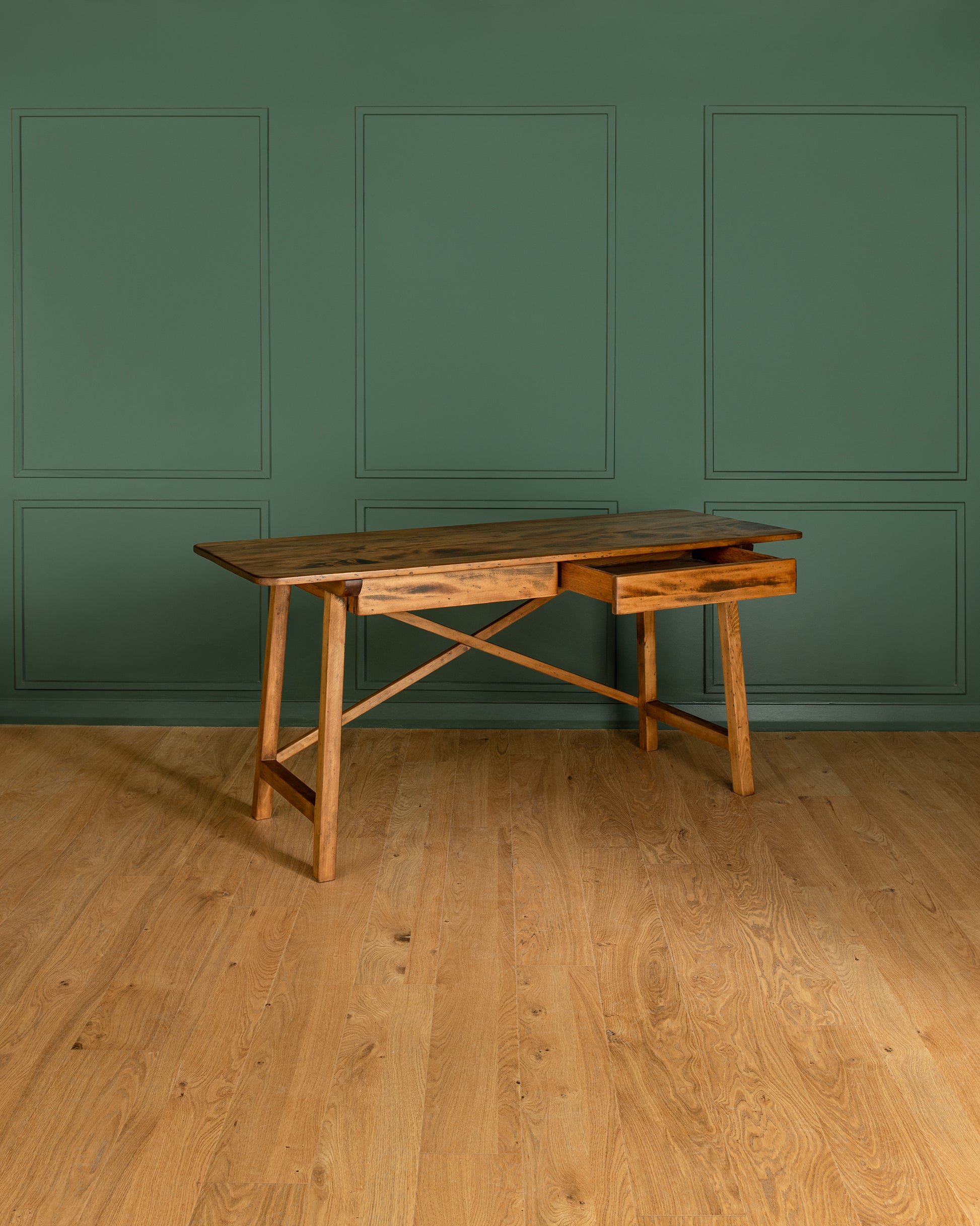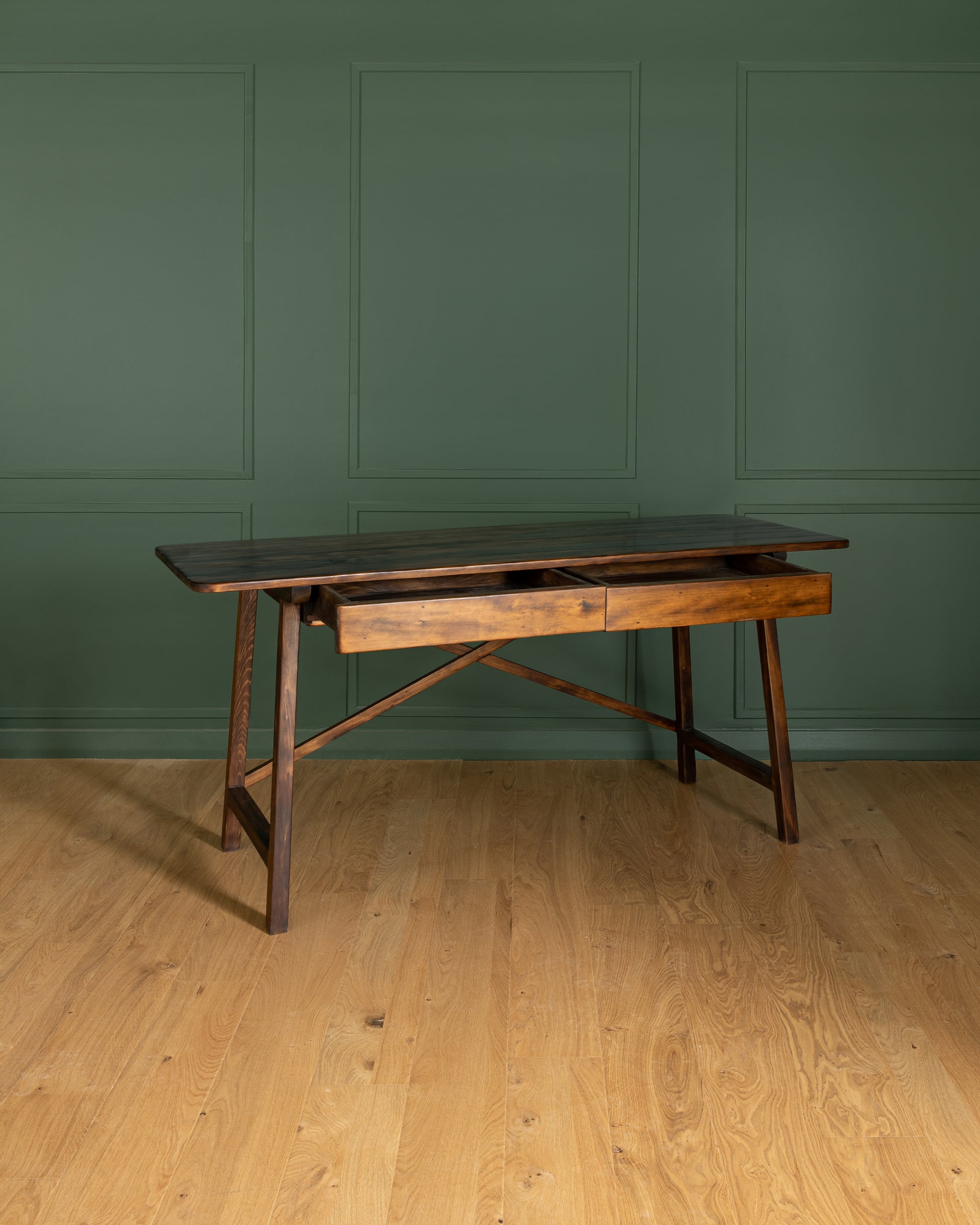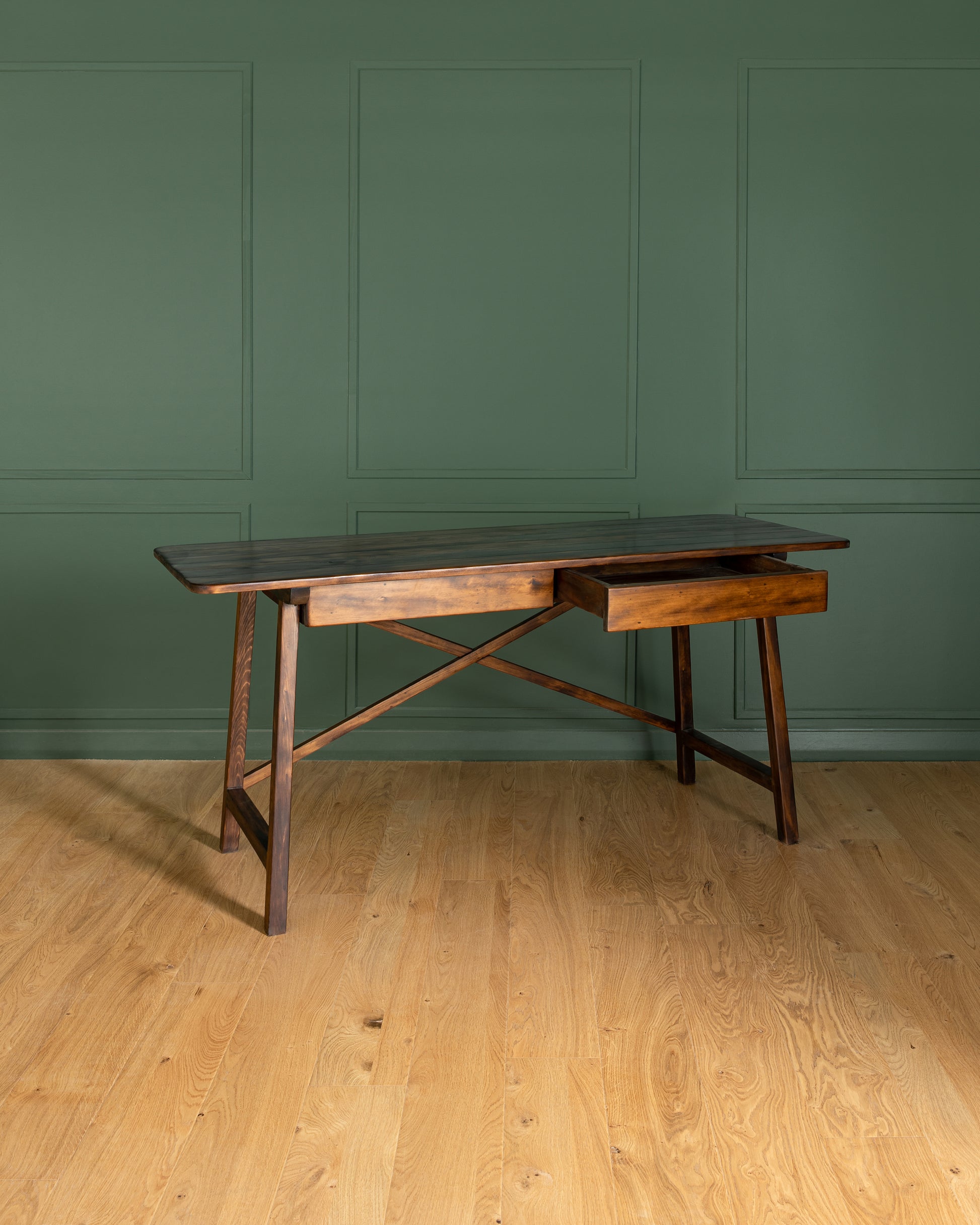Este escritorio fue el primer mueble con el estilo Greene. Una cubierta profunda y cajón alargado se sostiene sobre una base de líneas simples. Con eso basta para hacer de este escritorio un mueble cómodo y elegante a la hora de trabajar.