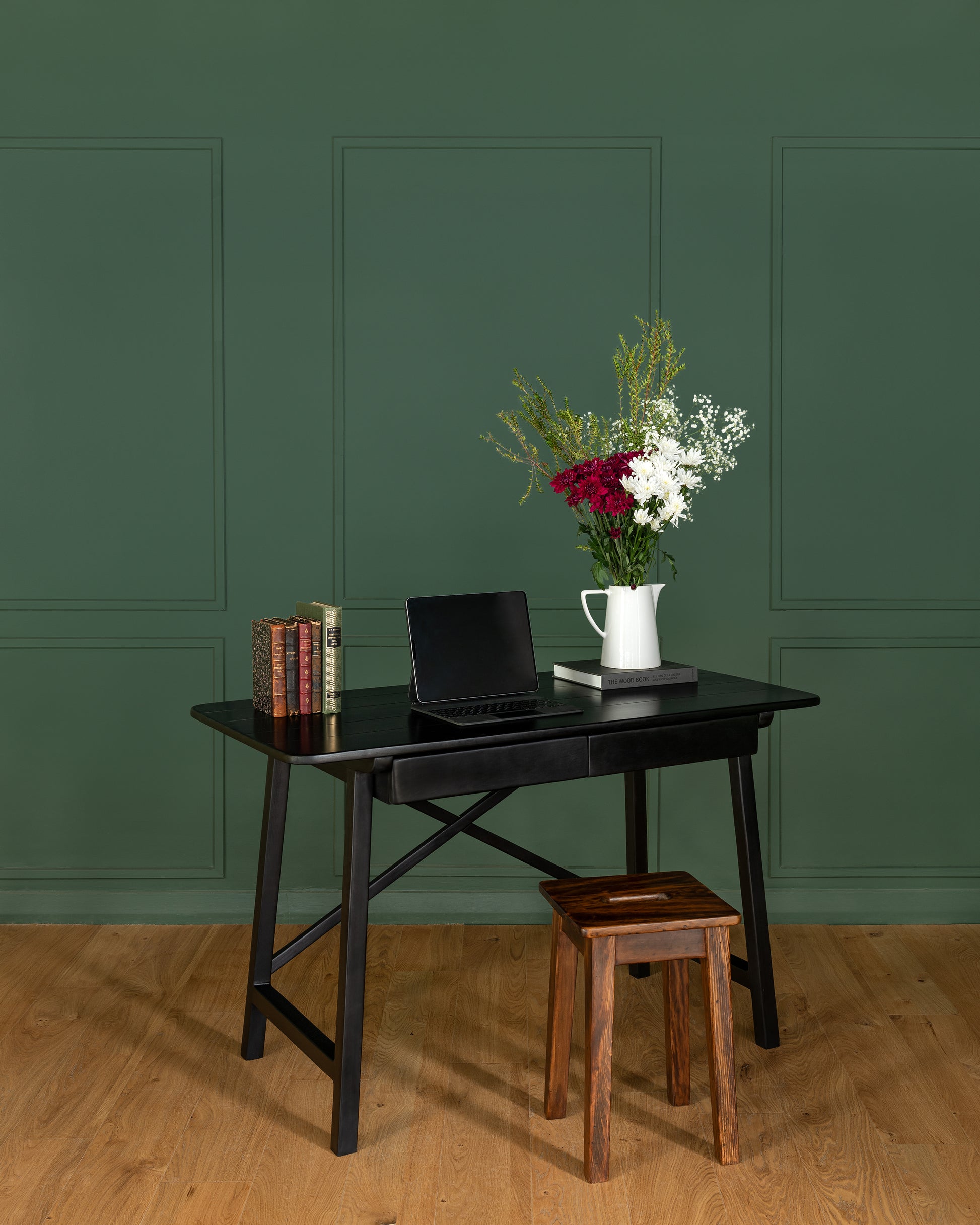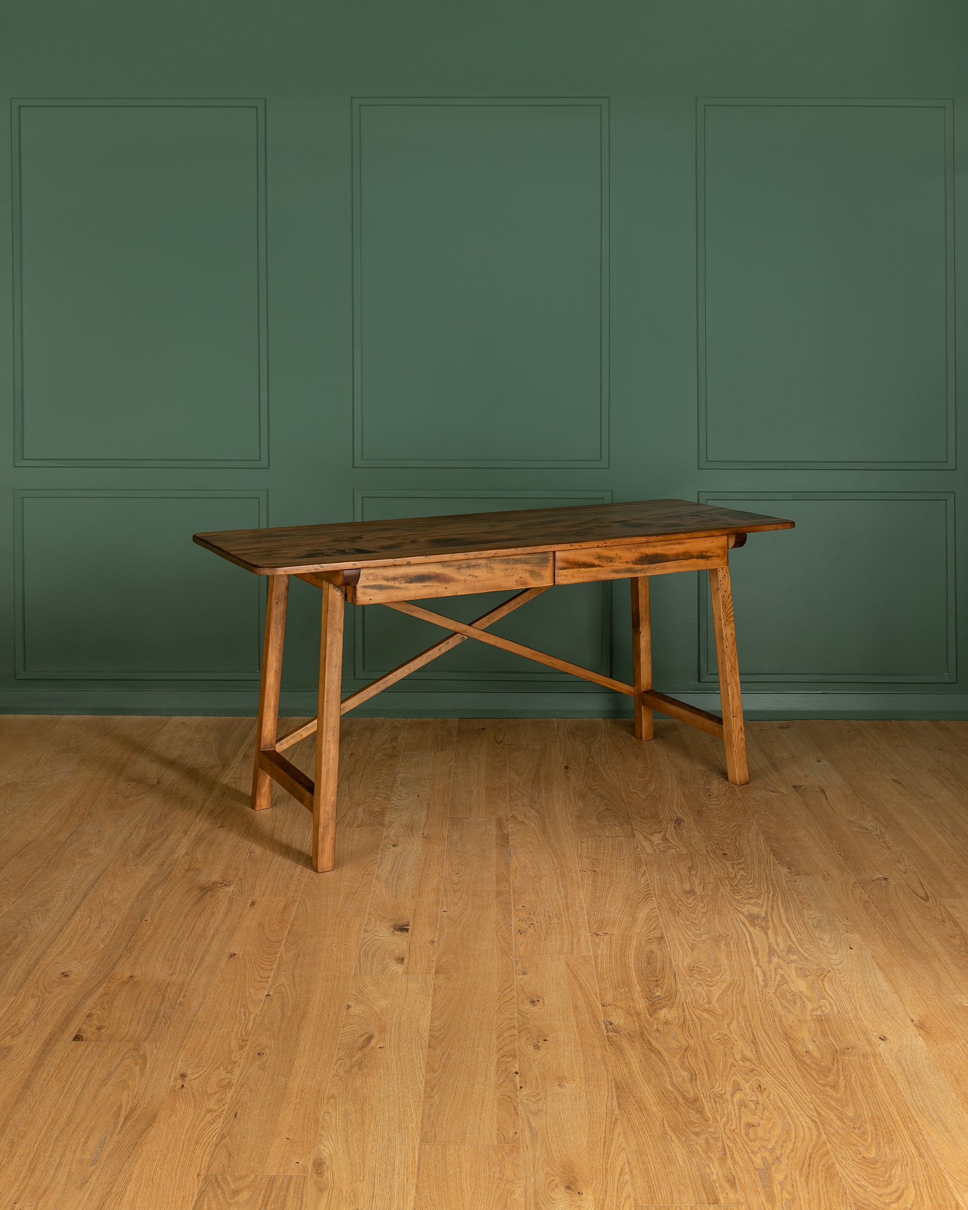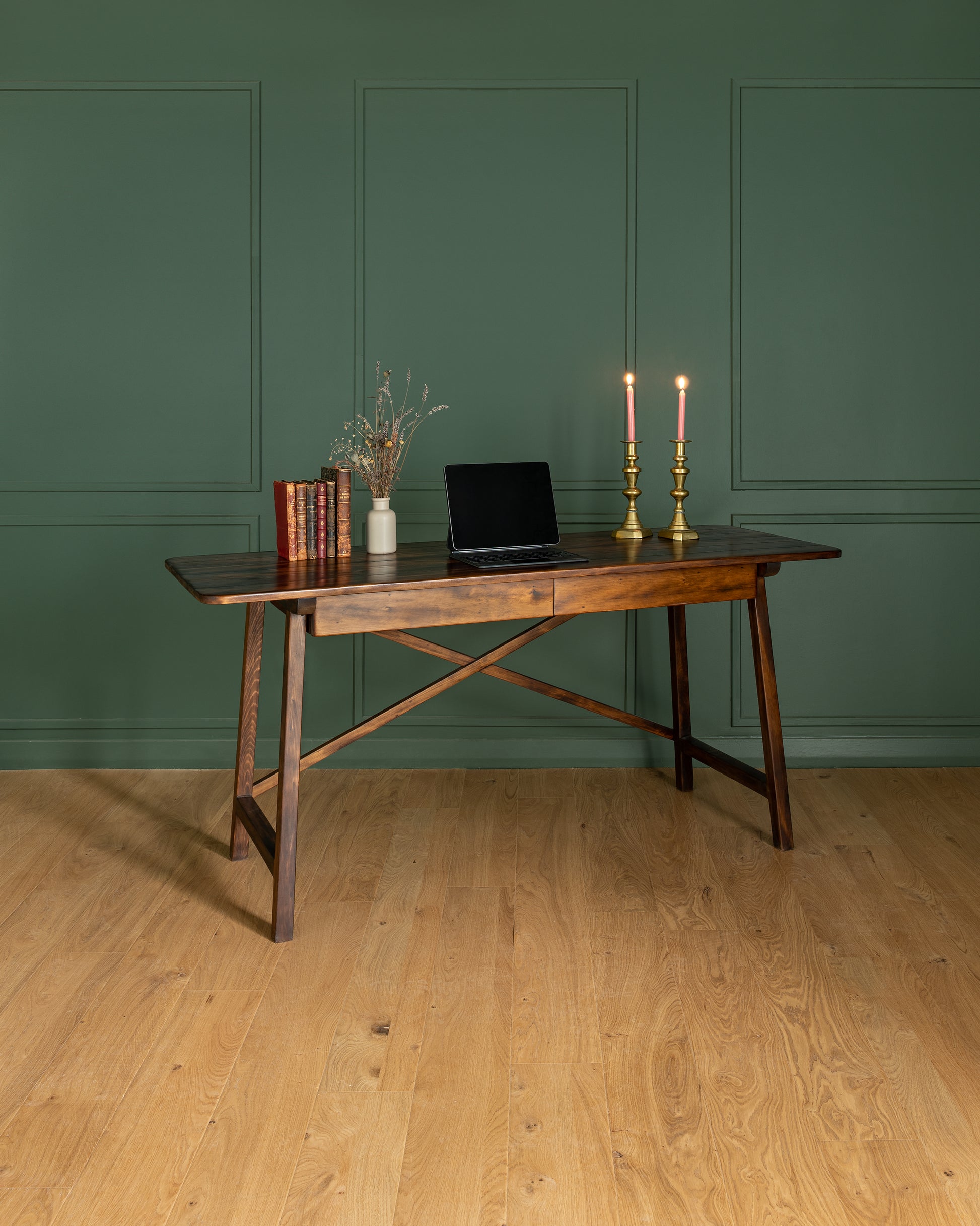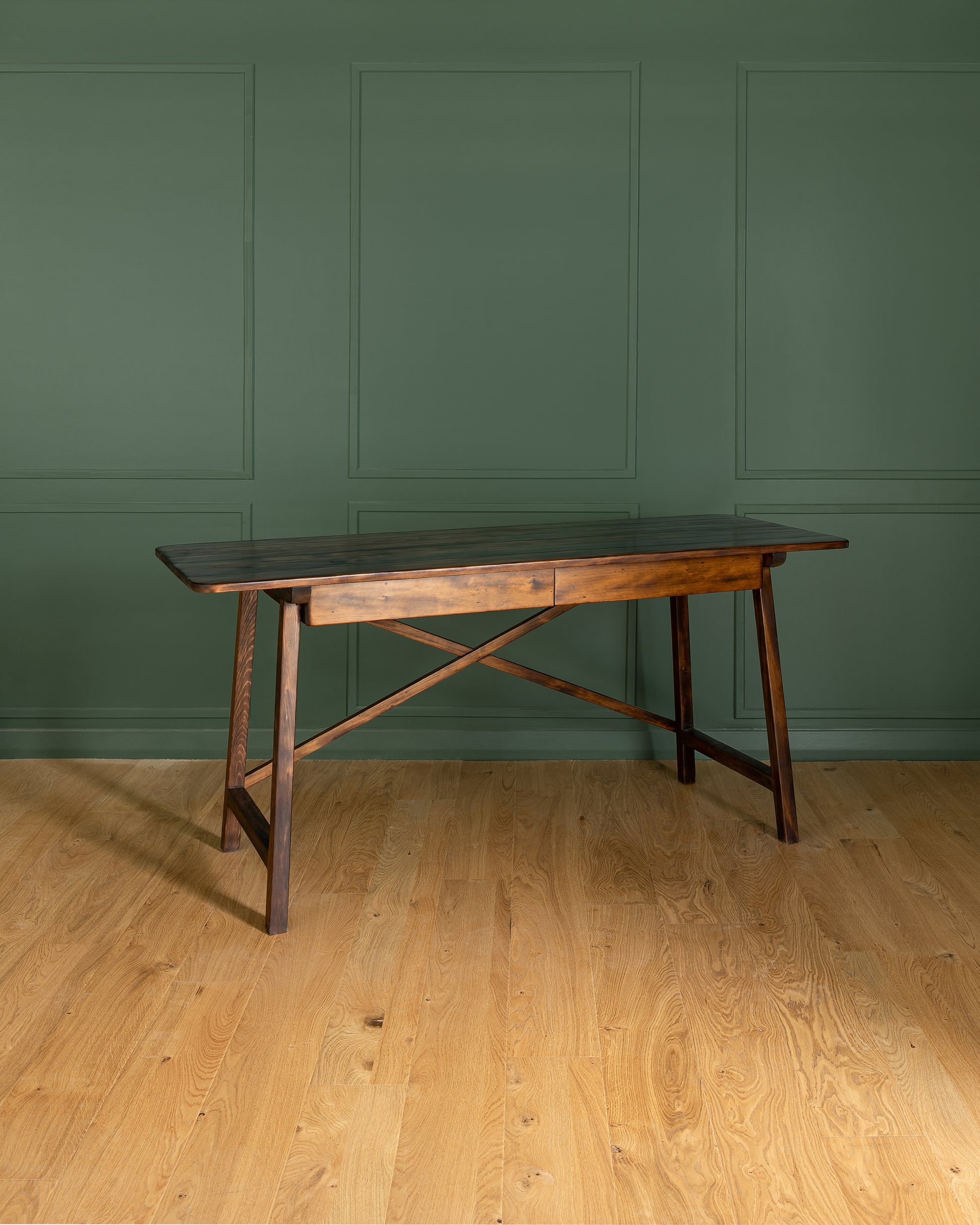 Este escritorio fue el primer mueble con el estilo Greene. Una cubierta profunda y cajón alargado se sostiene sobre una base de líneas simples. Con eso basta para hacer de este escritorio un mueble cómodo y elegante a la hora de trabajar.