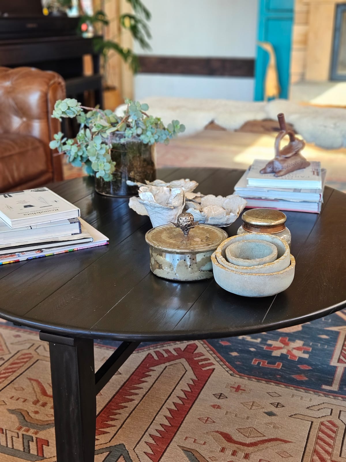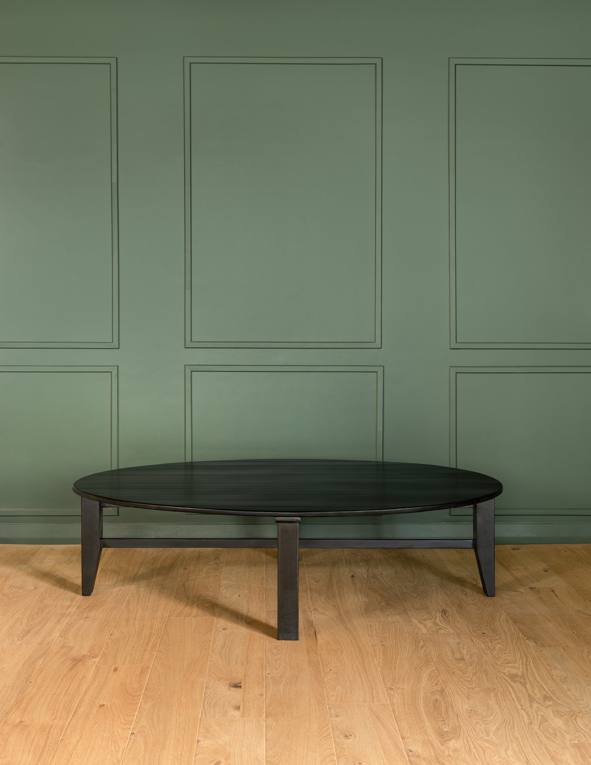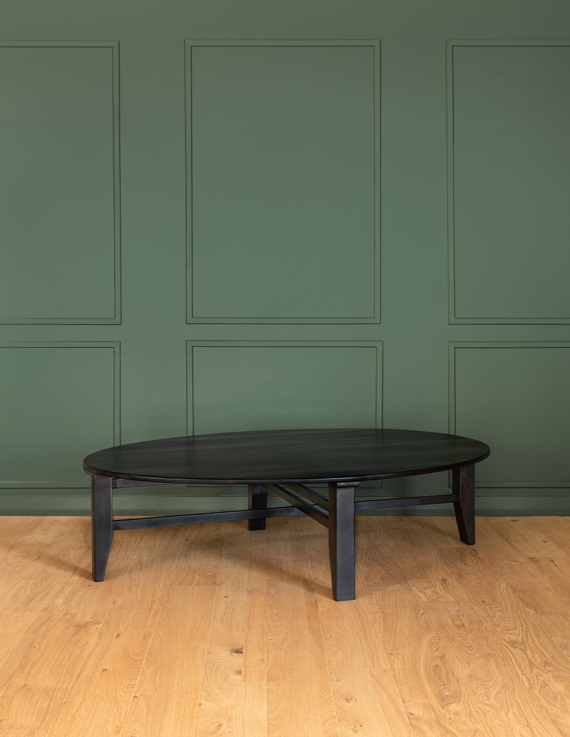 Un diseño original que conserva la cruceta tan característica y resalta el corte elegante en las patas. Sobre la base, cubierta ovalada, perfecta para espacios mas estrechos. O darle un aire diferente. Ideal para compartir en un living o salita.